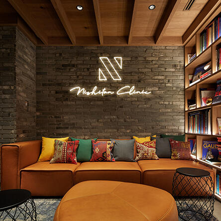 また今回は、フロアのエレベーターを降りた時から、お客様をおもてなしする空間が続くように、共用部もリノベーション。有機的なデザインで自然の柔らかな印象を感じつつ、これからの働き方に必要な様々な機能を盛り込んだ、マルチパーパスなオフィスが誕生した。
