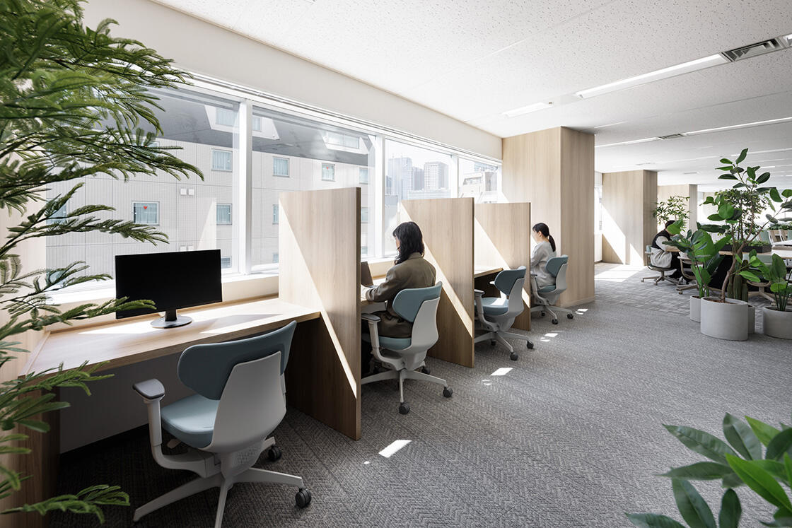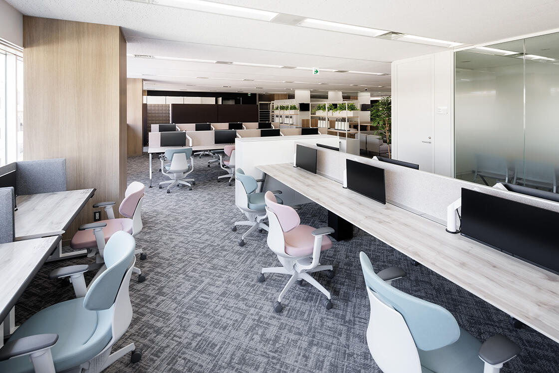 移転に際して新オフィスでは今までの固定席から、フリーアドレスへと大きく働き方を変えた。そこで、働く場を選ぶための自分への問いかけや社員同士の会話のきっかけとなる言葉「How are you feeling?」(=「気分はいかがですか?」「体調はいかがですか?」)をコンセプトにかかげ、様々な使い方のできる什器で執務空間を創り、選ぶことが楽しくなる「ABW×フリーアドレス」の執務空間を実現した。