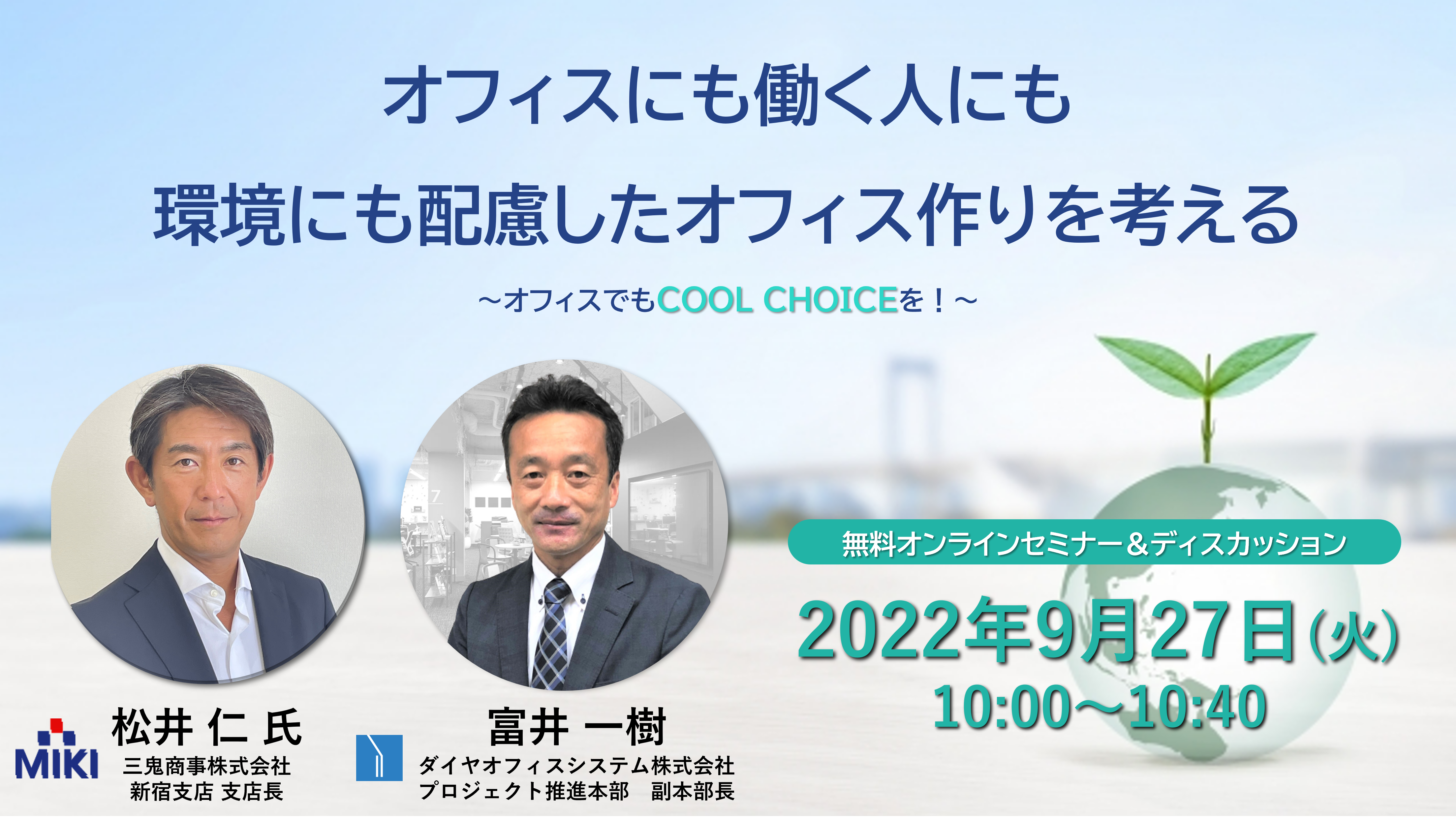 9/27開催!!【ウェビナー】 三鬼商事対談・環境に配慮したオフィス作りを考える